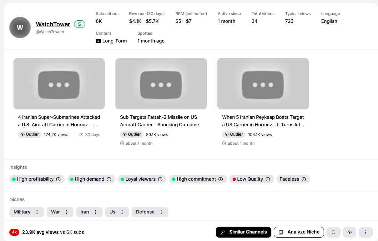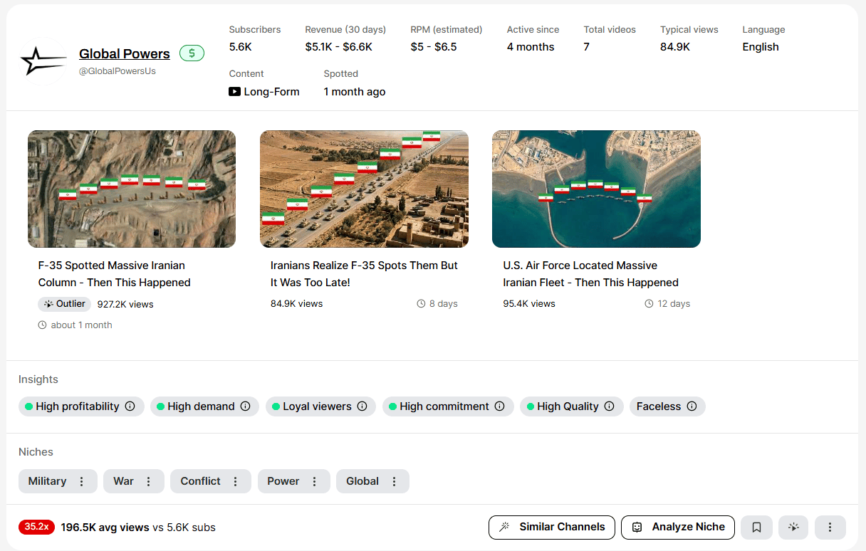 Whenever I am entering a new niche, I do a “similar channels'“ check